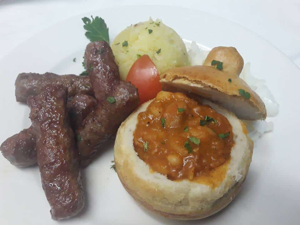 Goveji čevapčiči, prebranec, pražen krompir, solata