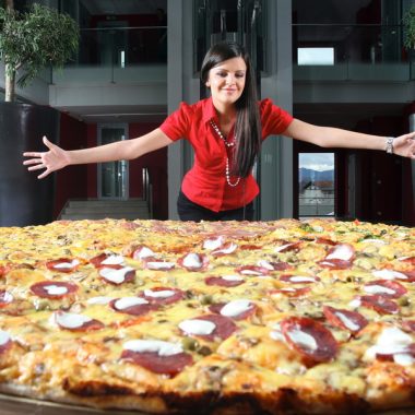 Največja pizza na svetu in bližnji okolici, premera 1.50 metra za vsaj 50 oseb.