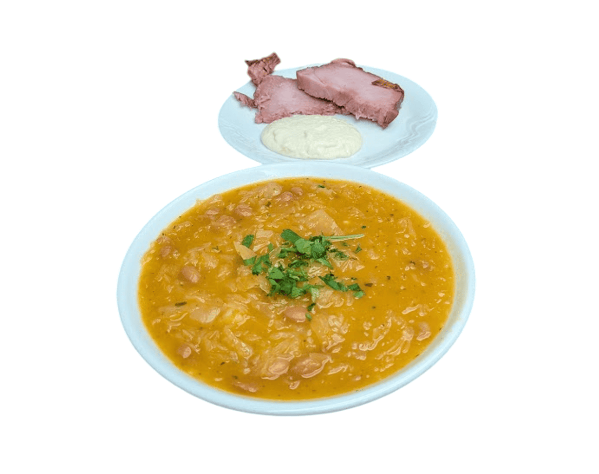 Meso se doda proti doplačilu (1/2 klobase, rebra ali šink)